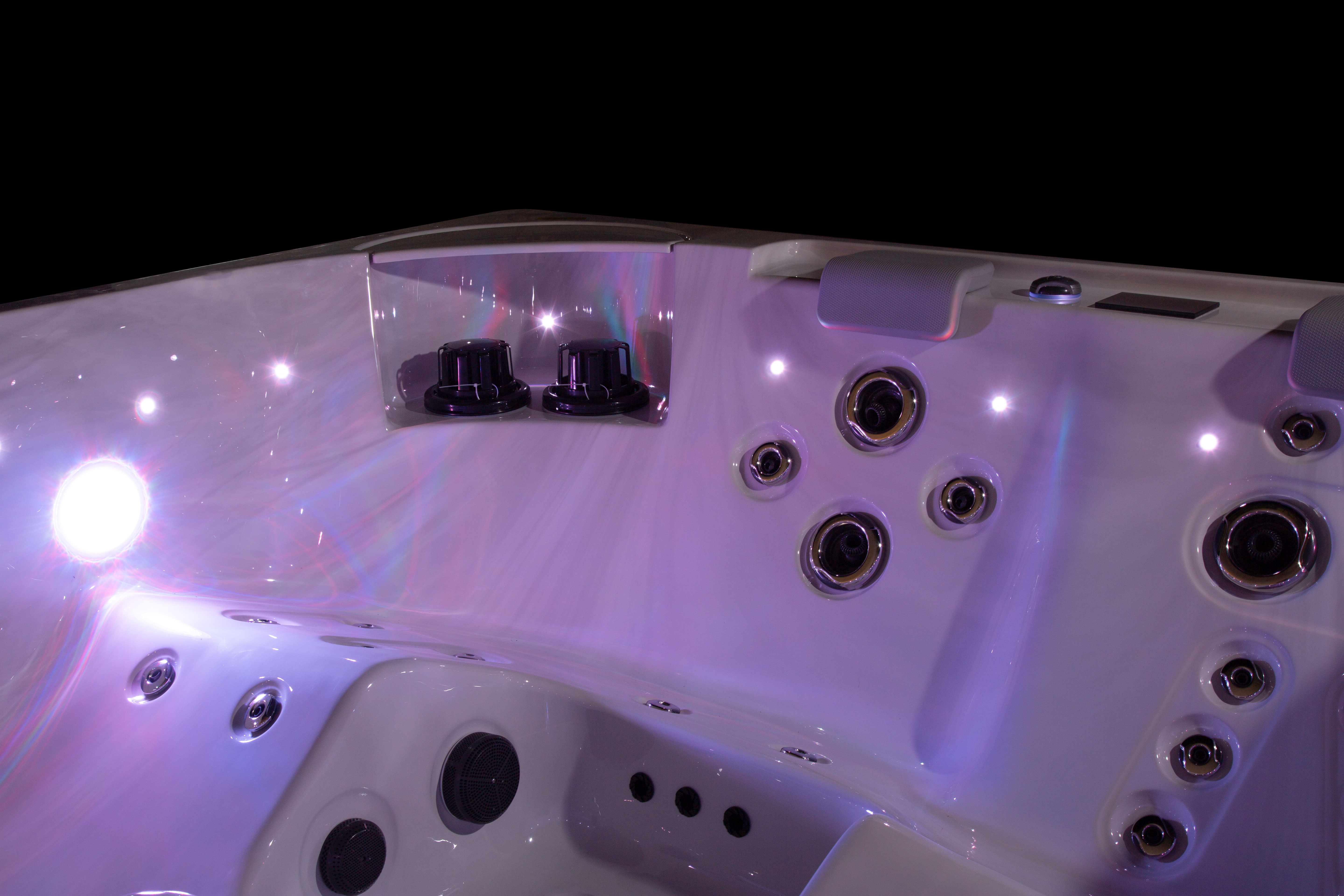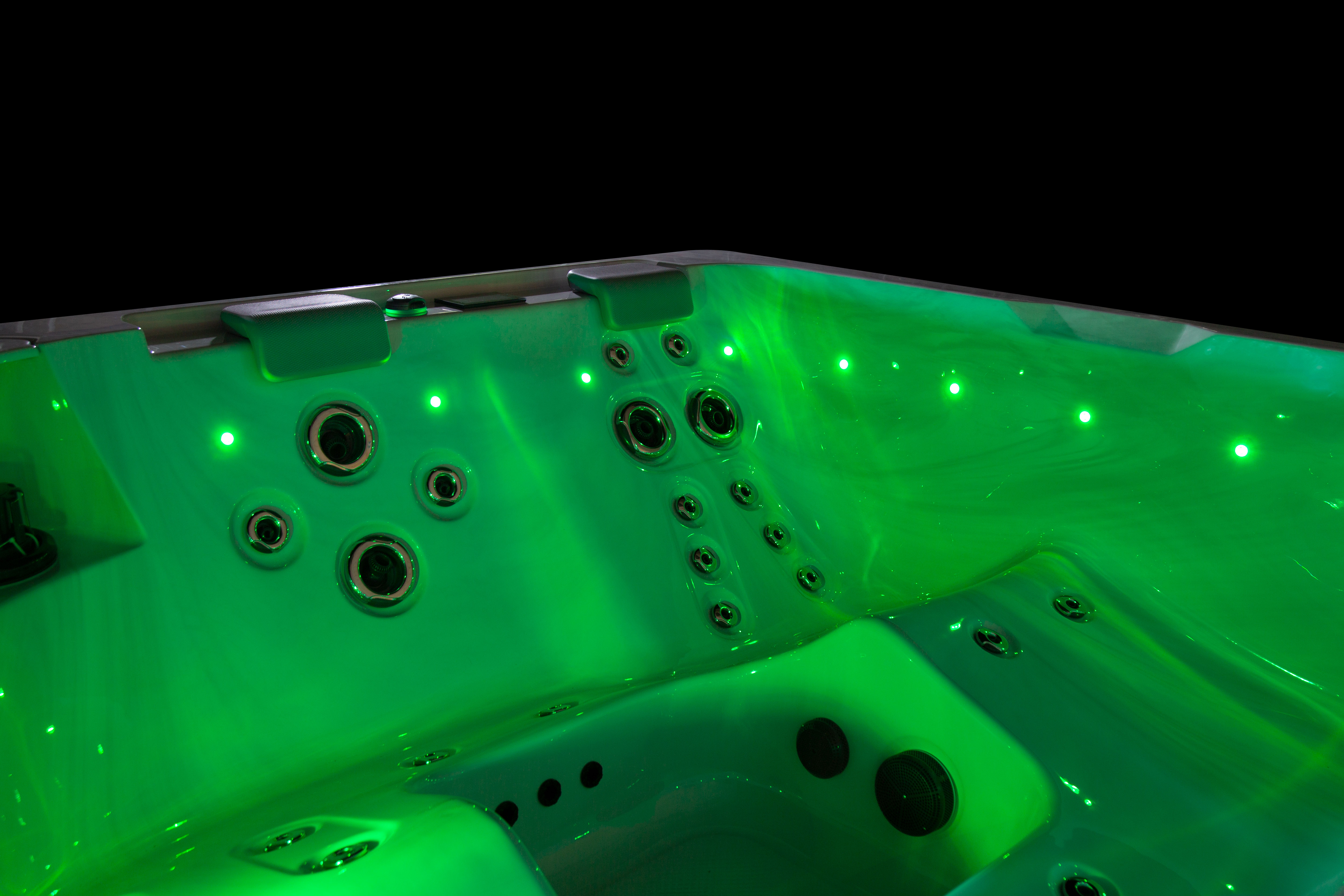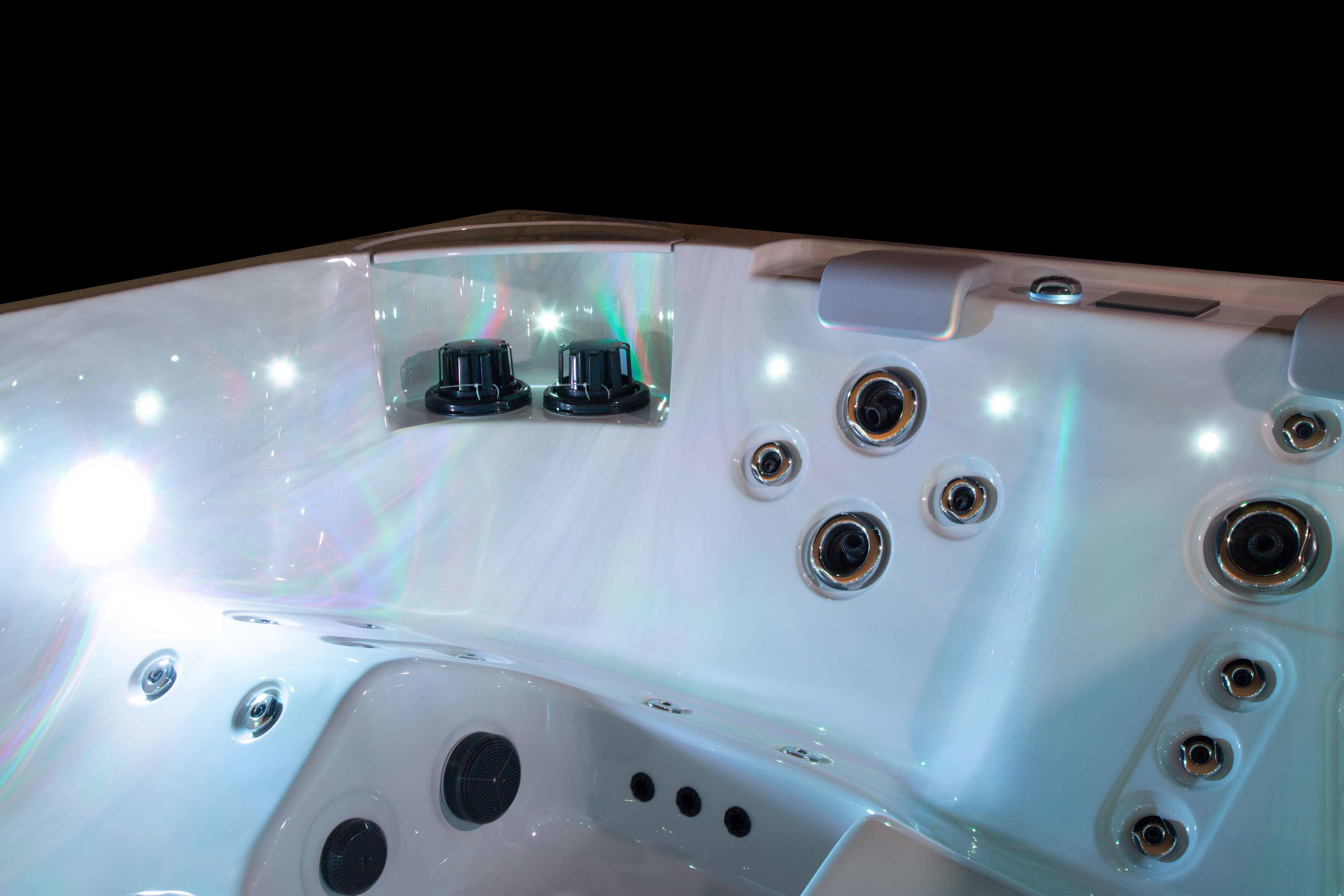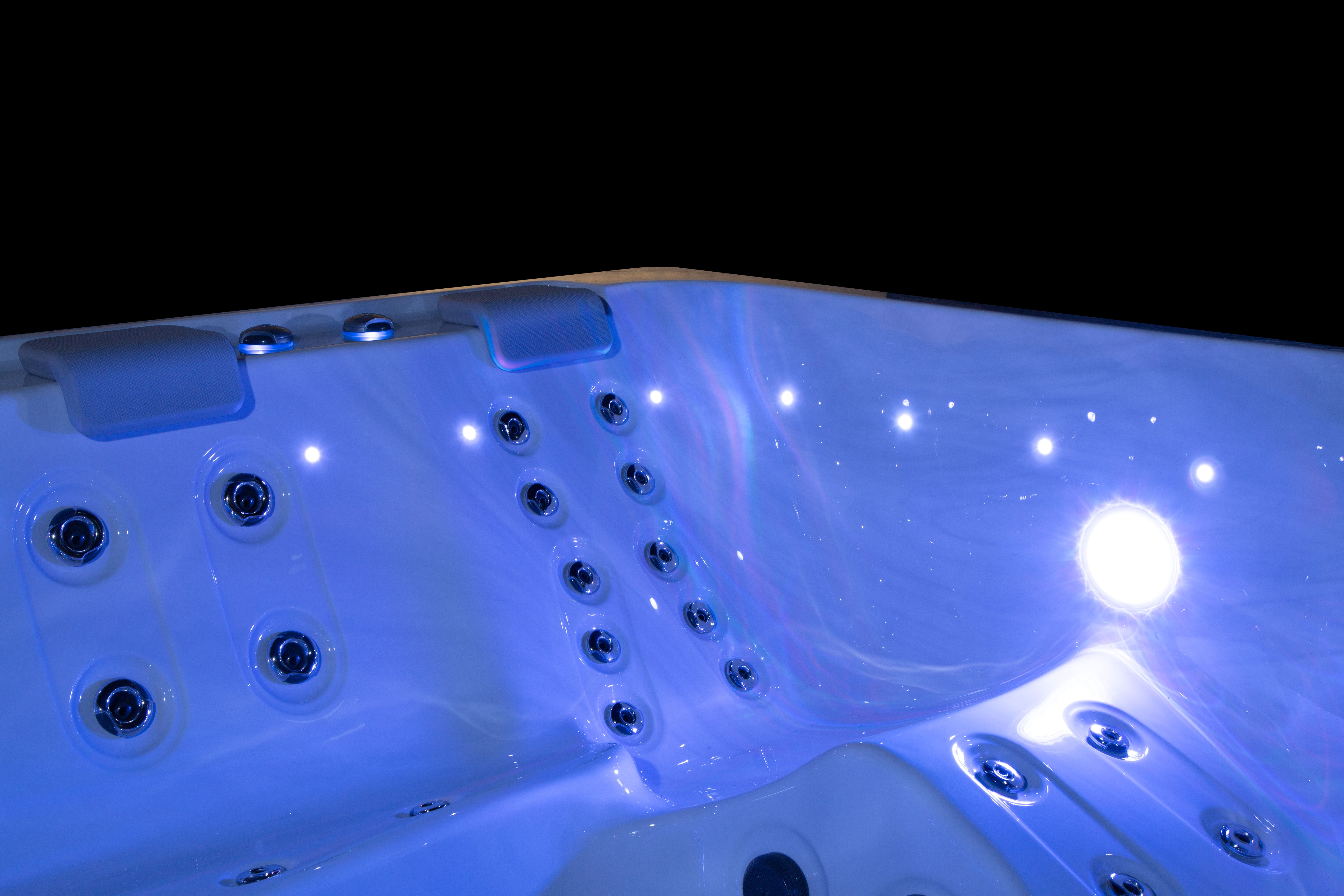Хорошо продуманная система освещения превращает вечерний отдых в эстетическое наслаждение. Многоцветная подводная подсветка Northern Lights, дополненная изящной подсветкой ватерлинии, создает сложную игру света на воде, способствующую глубокой релаксации и визуальной гармонии.